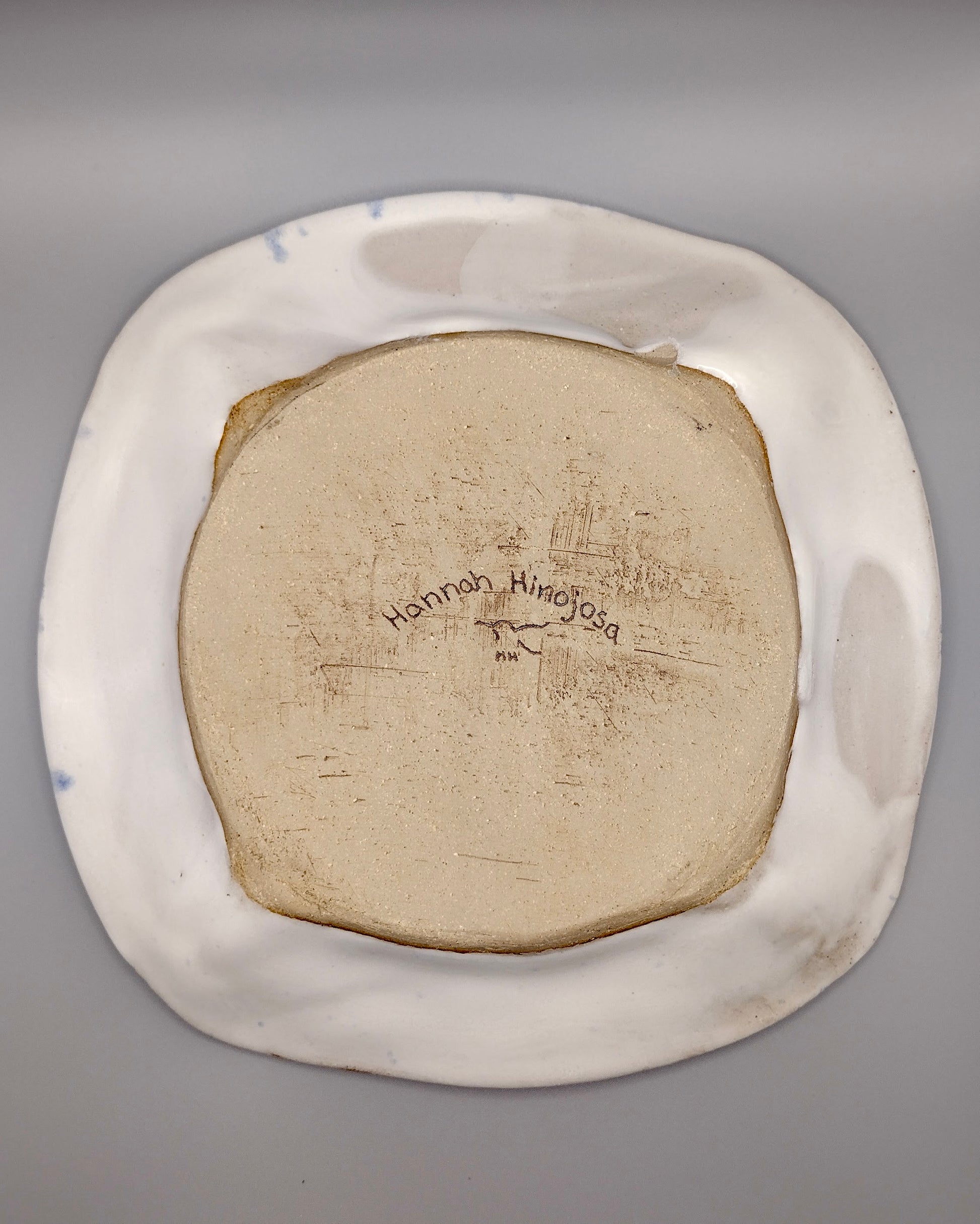 This ceramic plate is wheel-thrown and carefully pulled into a soft square form, balancing structure with the subtle movement of the hand. Finished in a white glaze with cobalt blue speckling, the surface has a quiet depth and variation that makes the piece feel lively without being loud.