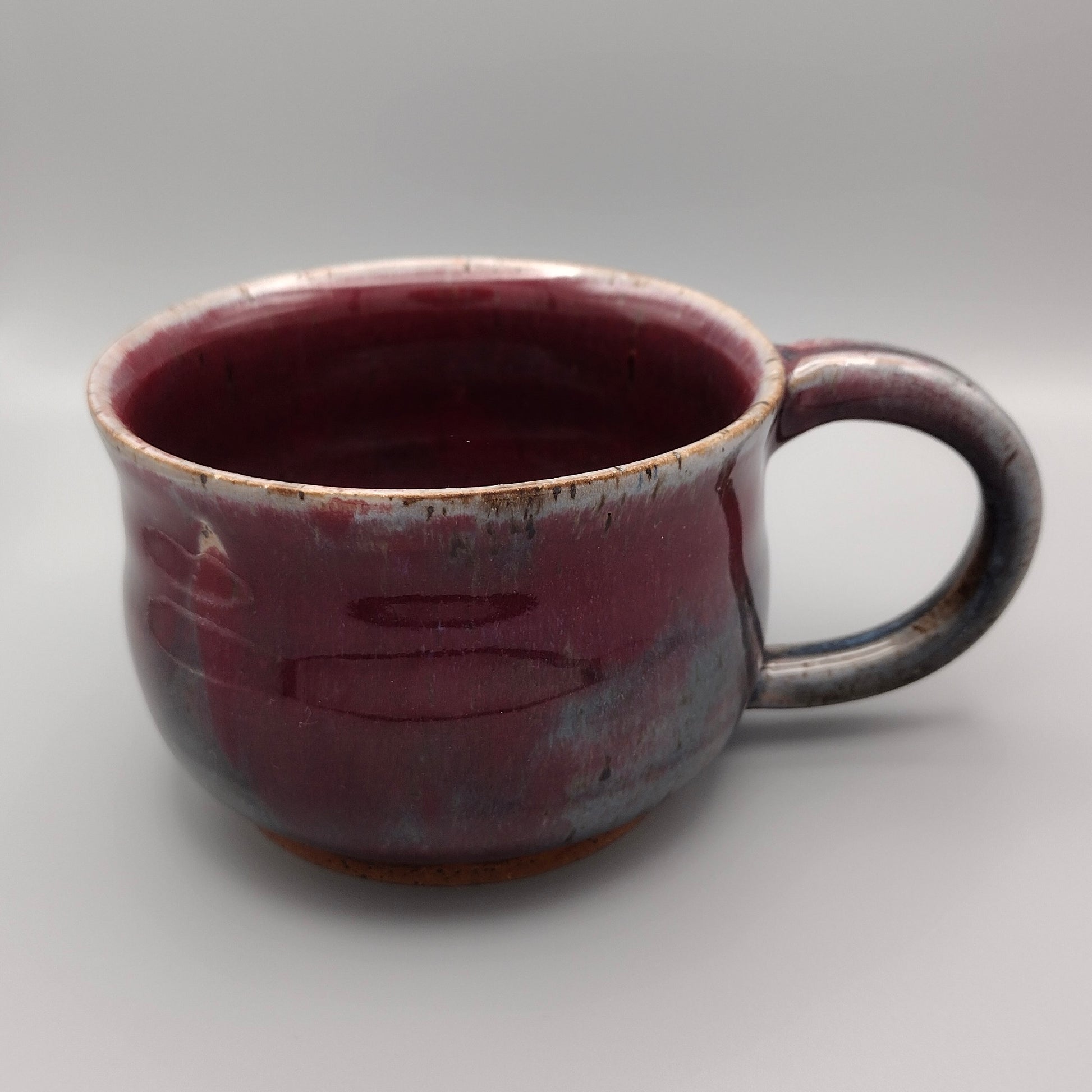 Sip your favorite brew in style with the Maroon Skies Mug! This hand-crafted ceramic beauty features a unique glaze that dances from rich maroon reds to soft, dreamy grays.