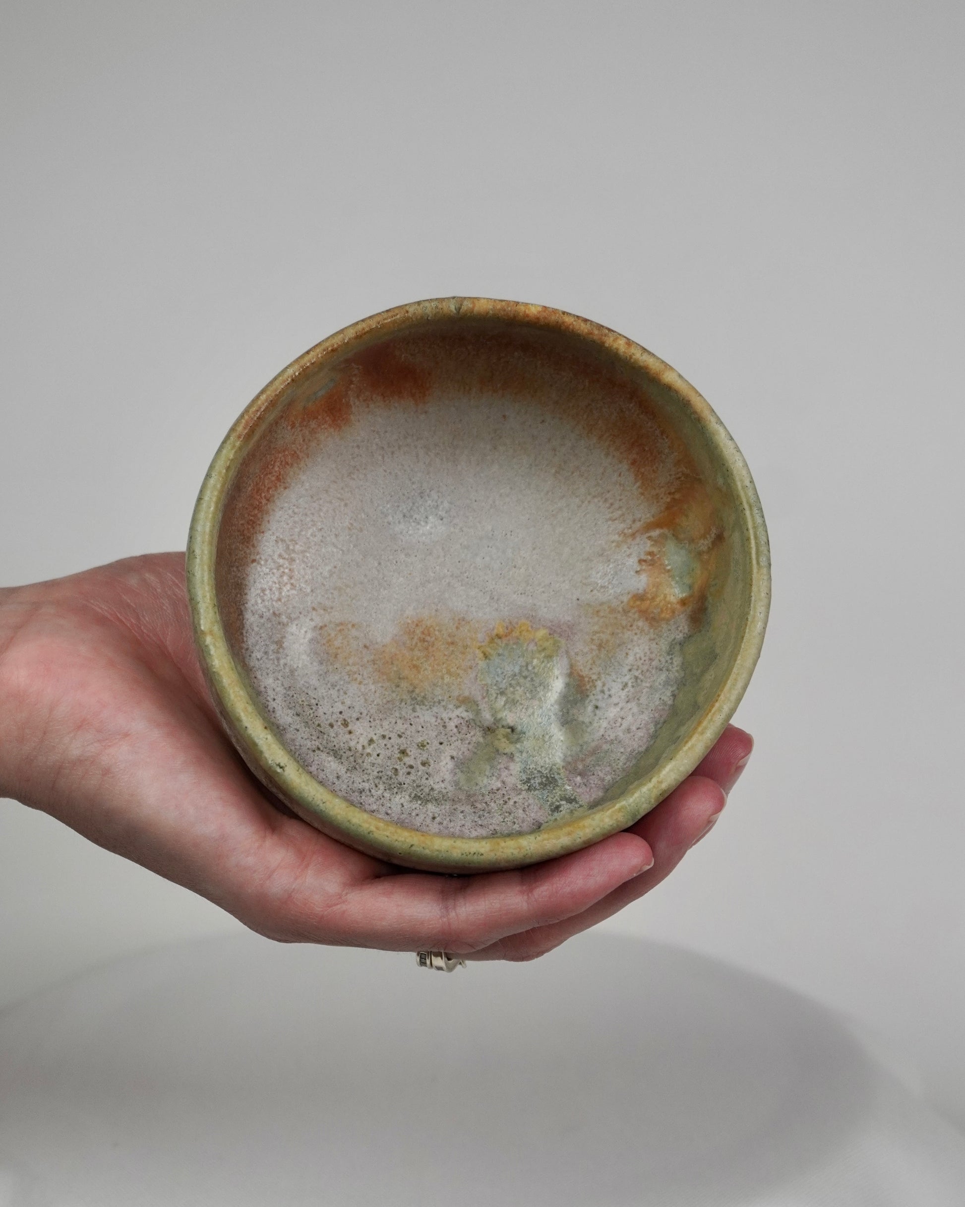 This charming ceramic trinket bowl showcases a mesmerizing two-tone glaze interaction that creates a foamy, textured finish reminiscent of Oregon's iconic painted hills. Warm reds, earthy tans, and silvery grays dance across the surface in an organic, one-of-a-kind pattern. Perfect for holding jewelry, keys, or small treasures on your nightstand or desk. A delightful conversation starter that brings natural landscape beauty into your home. Not food safe—display only.